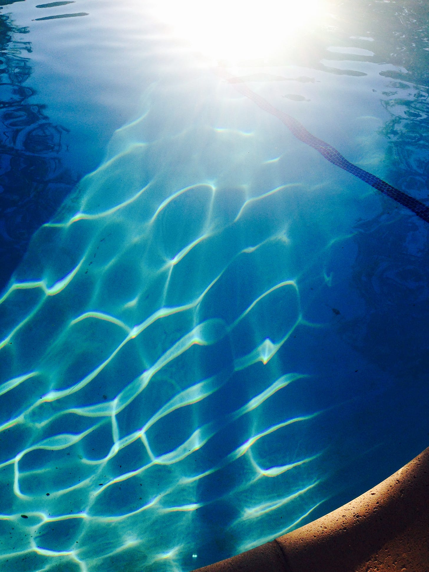 This was my Esther Willimas pool. This was the definition of joy and luxury and the spring of healing. It sat up on a hill in Bel Air. Yes, too good to be true. And it was almost almost entirely ours. I could swim in it every day from morning ‘til night, if I wanted. I would stay under the water and look, through my swim goggles, at the waves and the scattering of the light — and the turquoise delight!
