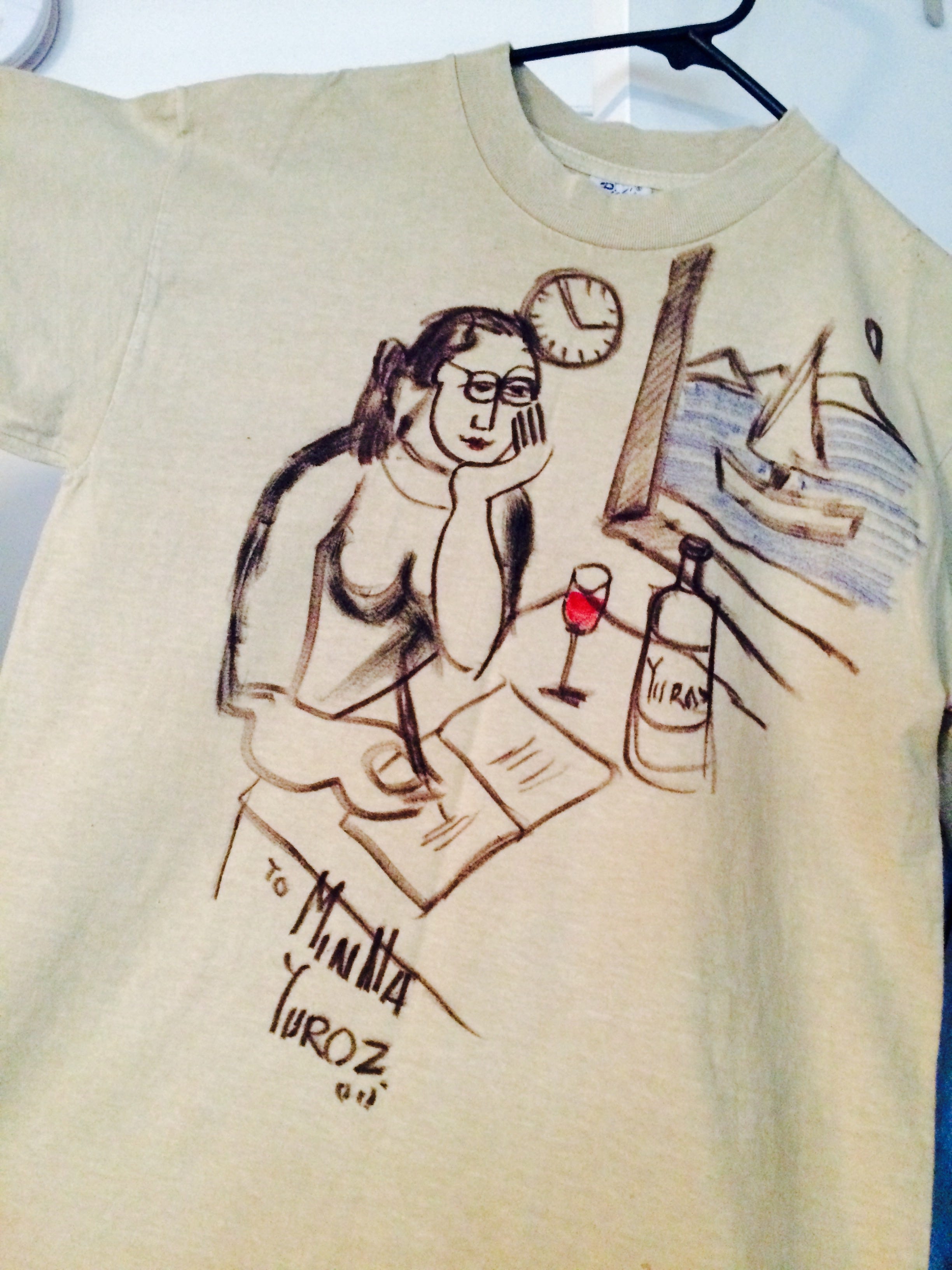 Somewhere deep beyond Downtown L.A. in his artist gallery, Yuroz drew this for me on a T-shirt. All of it still holds, except I have pressed pause on wine but may take it up again when I retire. Sometimes I take out this T-shirt and look at it. I try to find myself in it.